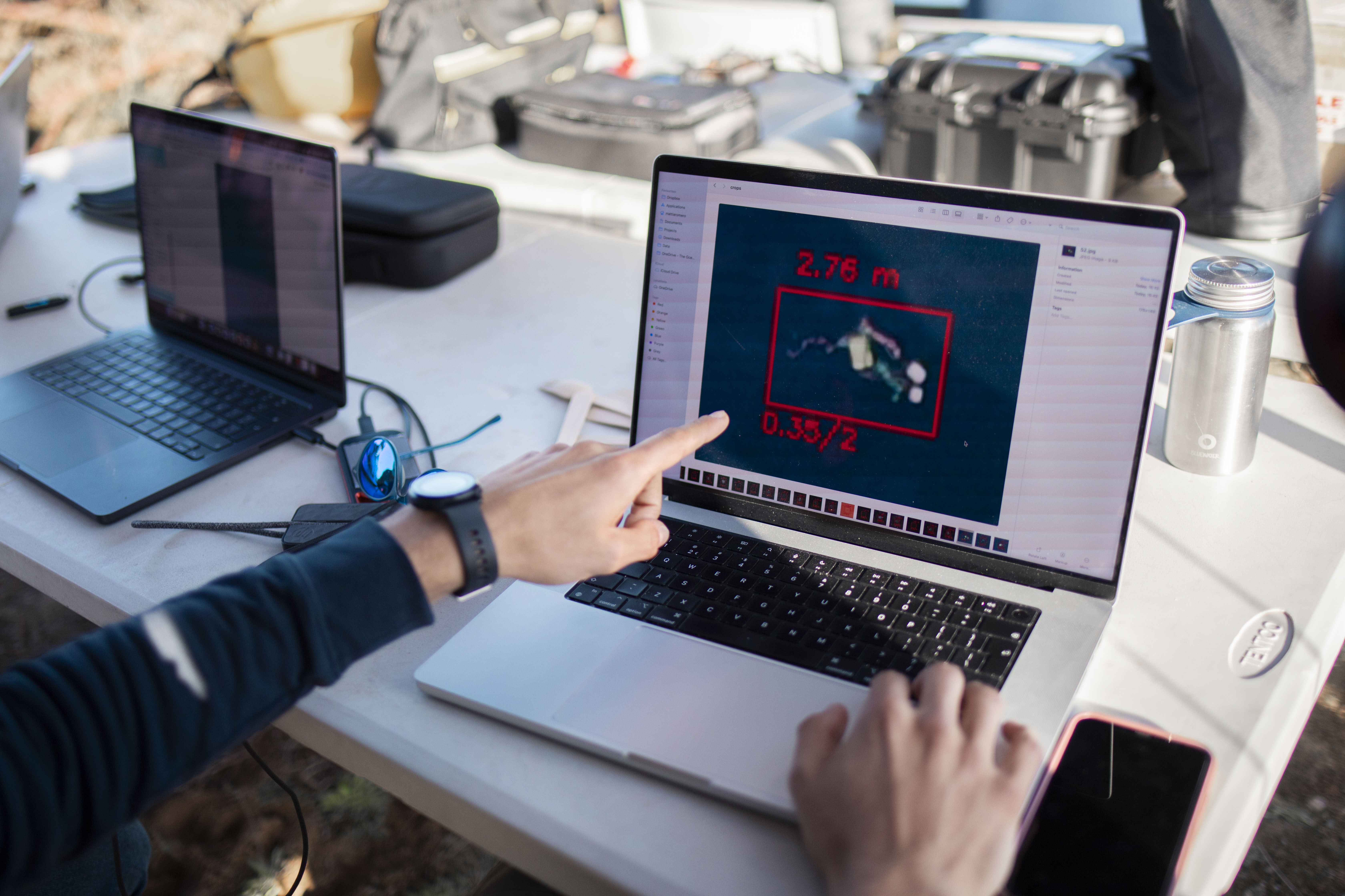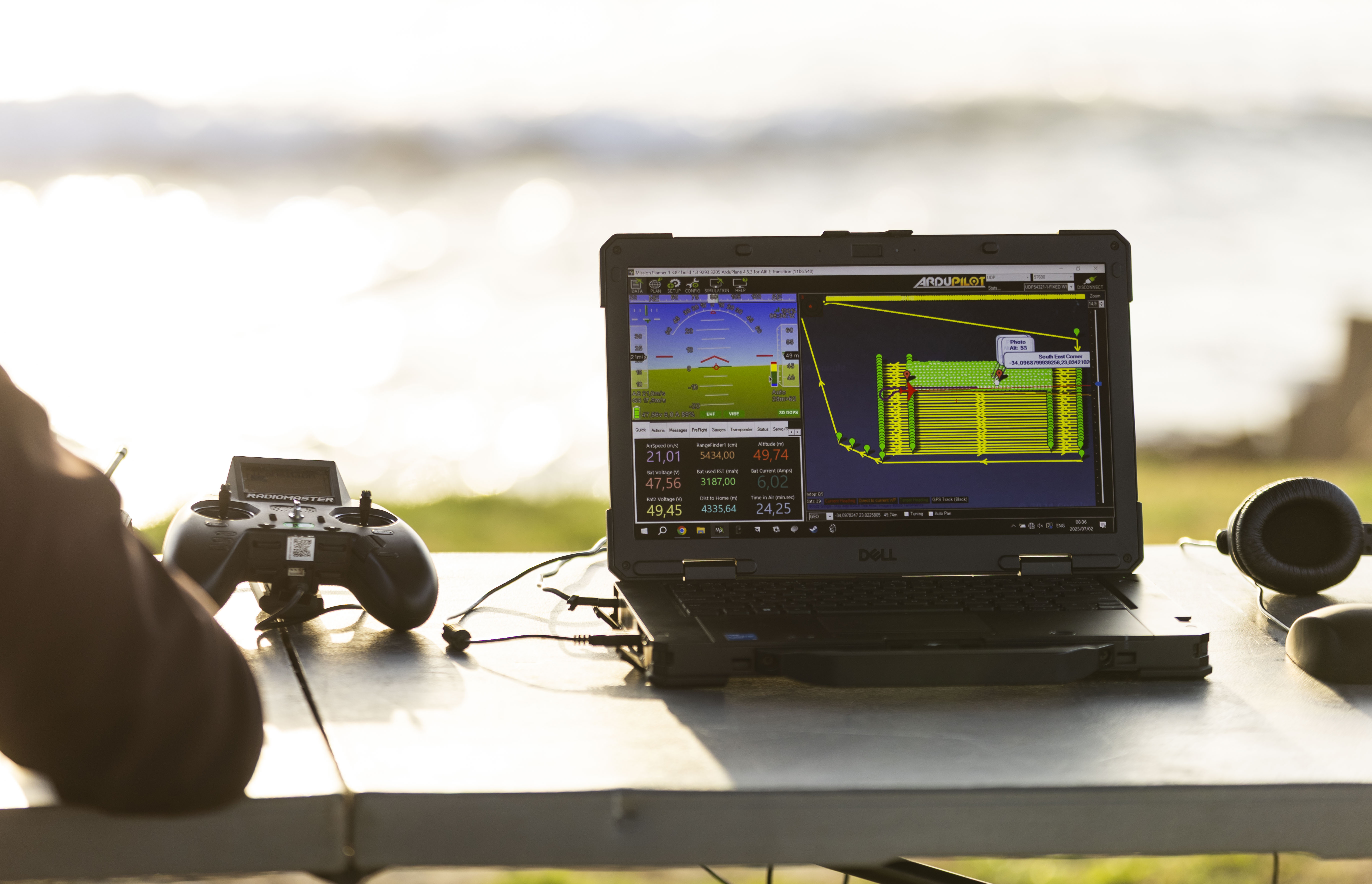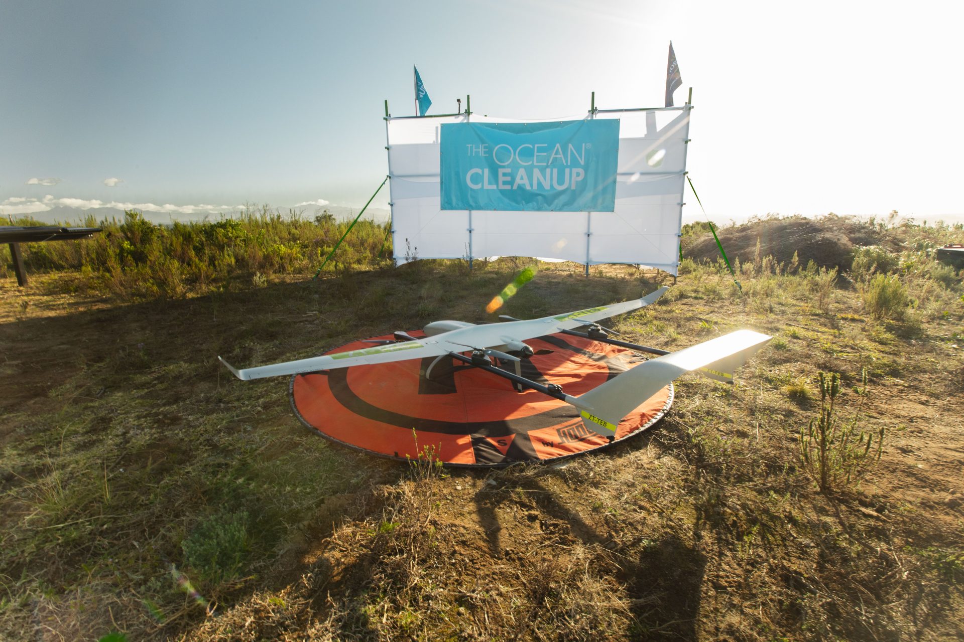 Photos from our drone testing in South Africa: AI-powered cameras are mounted on drones flying over the ocean, tracking and localizing plastic hotspots.