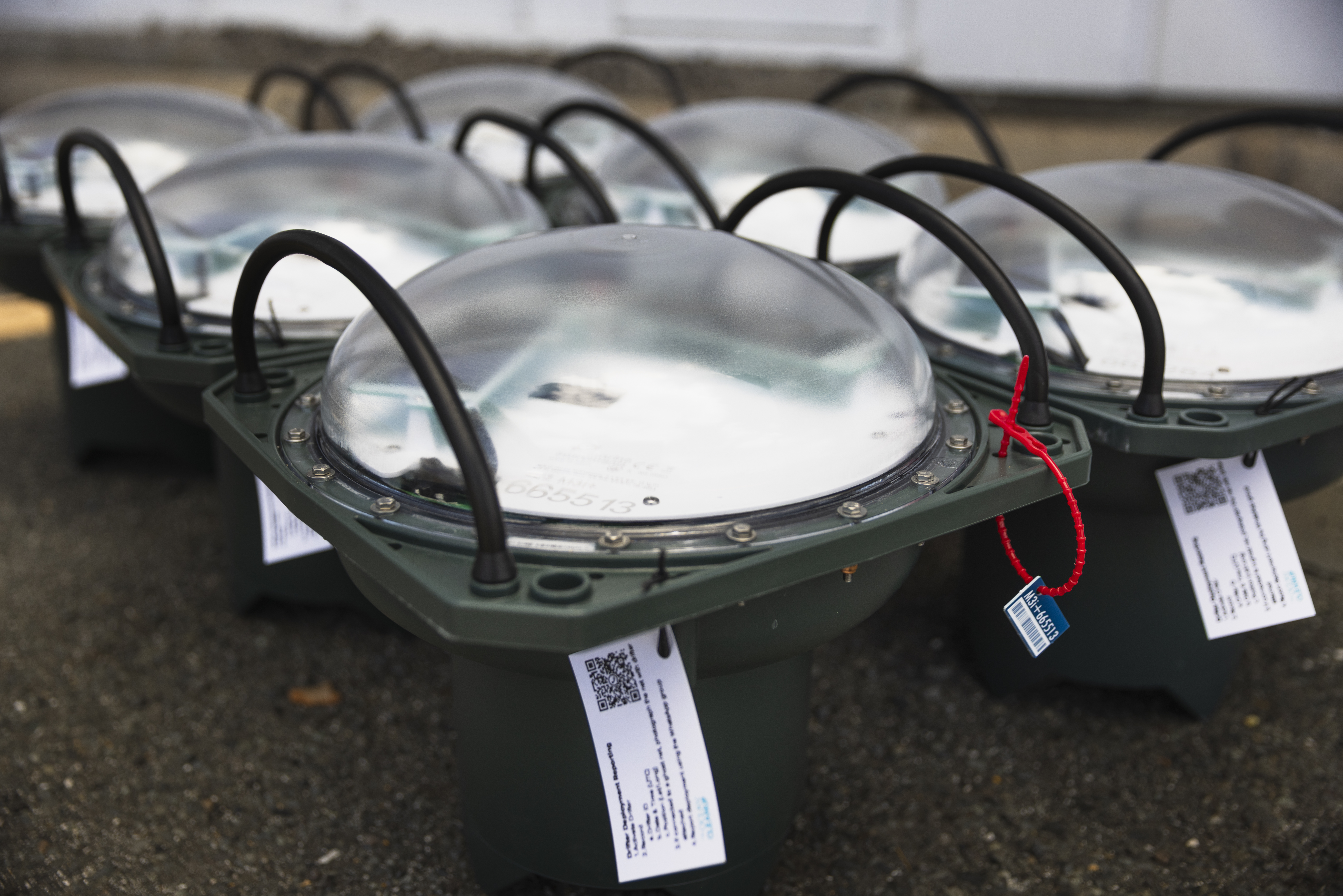 Plastic catch sealed off in containers. This is some of our first plastic catch, caught by System 001/B in 2019. The plastic in the end product - the sunglasses - is certified from the Great Pacific Garbage Patch, following a chain of custody protocol by DNV. -