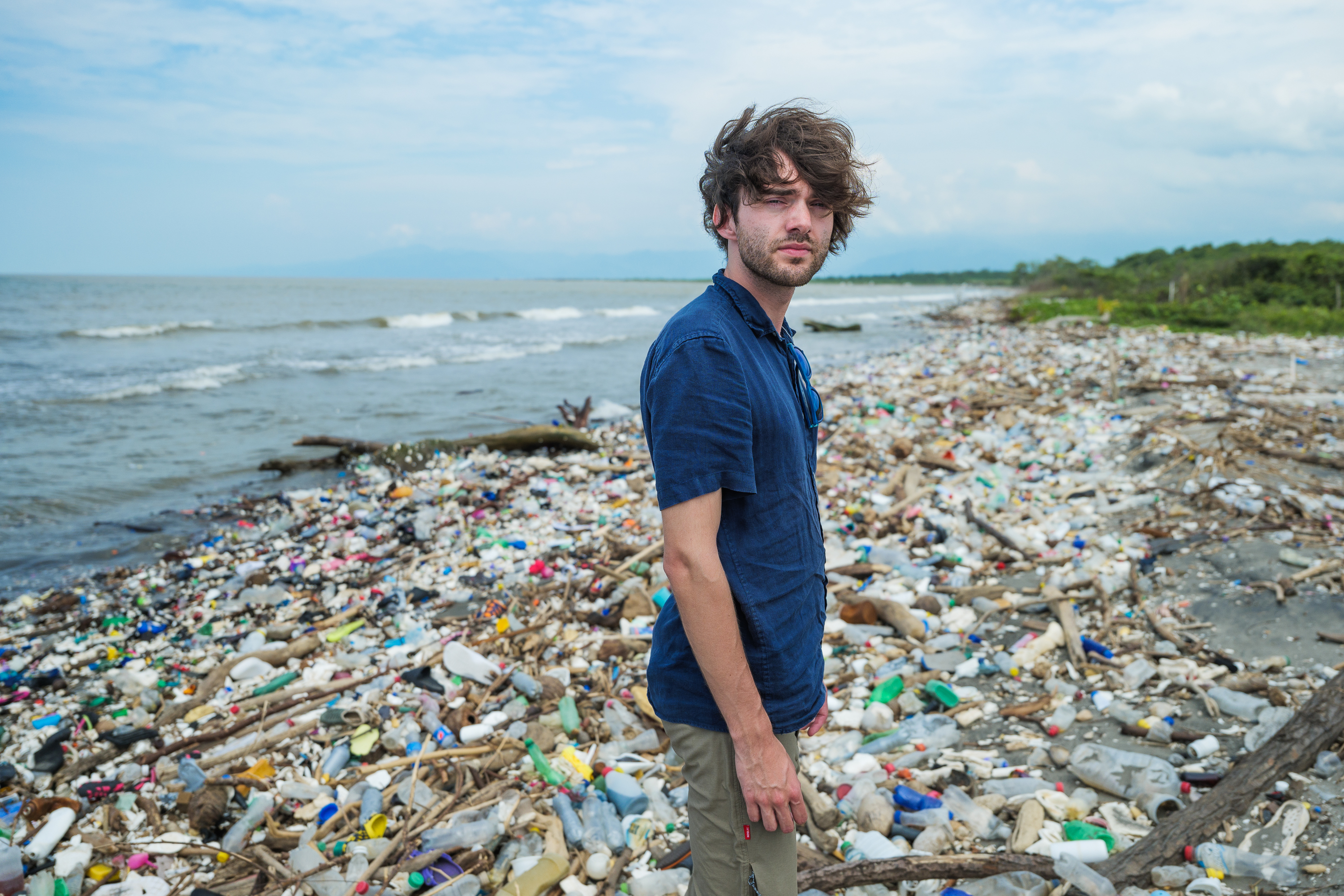 Boyan Slat, Founder and CEO, on a beach in Honduras. Rio Motagua basin has its estuary close to this beach. The Rio Las Vacas in Guatemala, in which The Ocean Cleanup is trialing an Interceptor Trashfence, is leading into Rio Motagua. The plastic pollution on the beach is estimated to come from this source. -