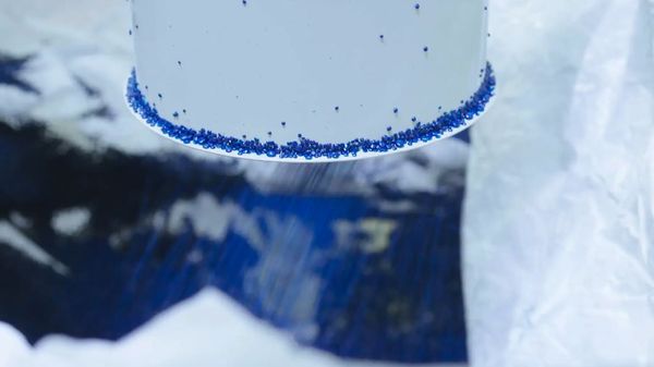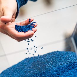 Before we can mold the plastic into its new form to become a product, it will require a small, but necessary, amount of additives, such as stabilizers and pigment. These additives will allow the material to achieve the performance and technical characteristics required for manufacturing, while at the same time create a beautiful, ocean-inspired aesthetic for the product. This combination of additives is embedded in a carrier, called a masterbatch. Once developed, it has been mixed with the plastic to create The Ocean Cleanup material.